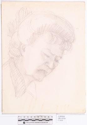 На листе вертикального формата изображен в повороте в три четверти направо портрет неизвестной пожилой женщины. Глаза опущены вниз, голова чуть наклонена. Волосы собраны в пучок на затылке. Вокруг шеи - отложной воротничок.
