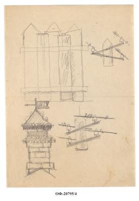 Набросок забора, башни и телеграфного столба. Рисунок