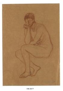 Обнаженная, сидящая в позе мыслителя. Набросок
