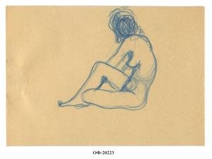Сидящая, сгорбившись, обнаженная. Набросок
