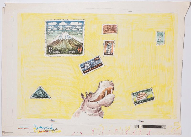 Бегемот, гора и парусники. К стихотворению "Удивительное дело". К книге "Разноцветная семейка" Э.Н. Успенского. Иллюстрация