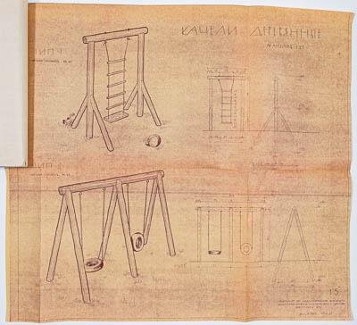 Качели деревянные. Тип I и II. "Примерные решения благоустройства и озеленения". Лист из альбома