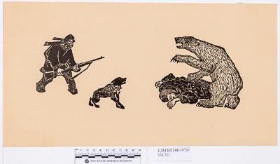 Медведь и охотники. К книге Н.Трублаини "Рассказы о далеком севере". Иллюстрация