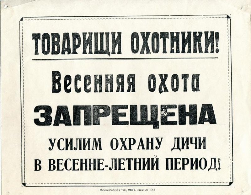 Товарищи охотники! Весенняя охота запрещена. Плакат