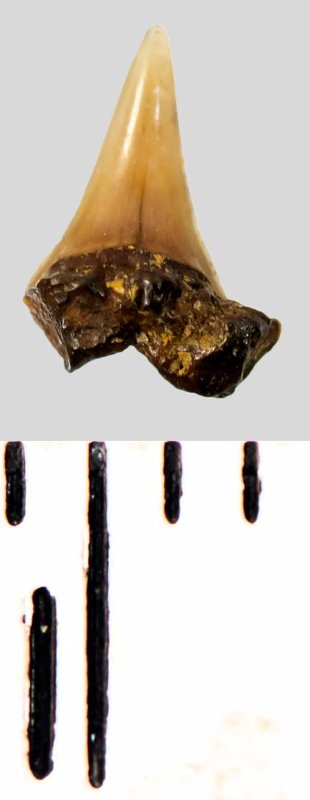 Зуб. Акула. Eostriatolamia subulata (Agassiz, 1843). Классификация: Хордовые Chordata, Позвоночные Vertebrata, Хрящевые рыбы Chondrichthyes, Пластиножаберные Elasmobranchii, Акулы Selachii, Ламнообразные Lamniformes, Песчаные акулы Odontaspididae