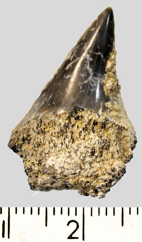Зуб. Акула. Otodus subserratus (Agassiz, 1843). Классификация: Хордовые Chordata, Позвоночные Vertebrata, Хрящевые рыбы Chondrichthyes, Пластиножаберные Elasmobranchii