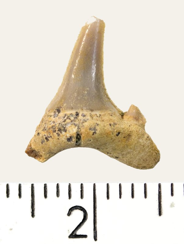 Зуб. Акула. Hypotodus sp. Классификация: Хордовые Chordata, Позвоночные Vertebrata, Хрящевые рыбы Chondrichthyes, Пластиножаберные Elasmobranchii