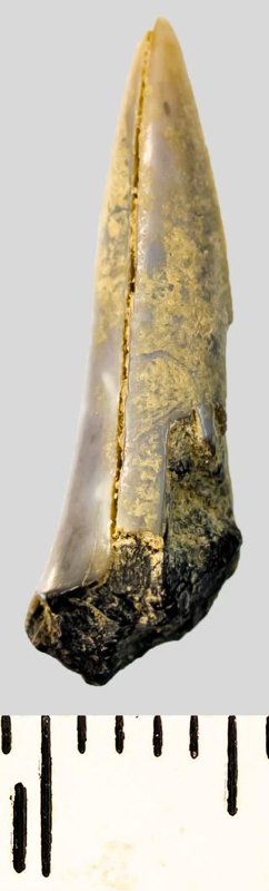 Зуб (фрагмент). Акула. Hypotodus robustus (Leriche, 1921). Классификация: Хордовые Chordata, Позвоночные Vertebrata, Хрящевые рыбы Chondrichthyes, Пластиножаберные Elasmobranchii
