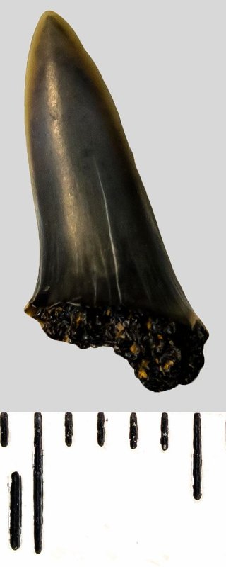 Зуб (фрагмент). Акула. Striatolamia macrota (Agassiz, 1843)