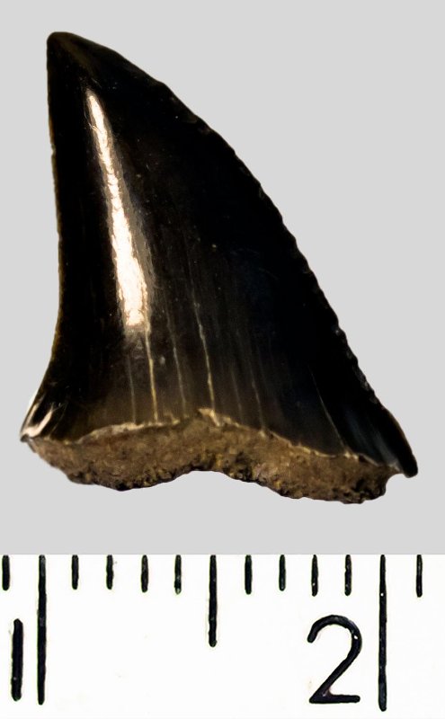 Зуб (фрагмент). Акула. Striatolamia macrota (Agassiz,1843)