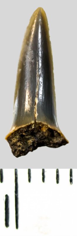 Зуб (фрагмент). Акула. Striatolamia macrota (Agassiz, 1843)