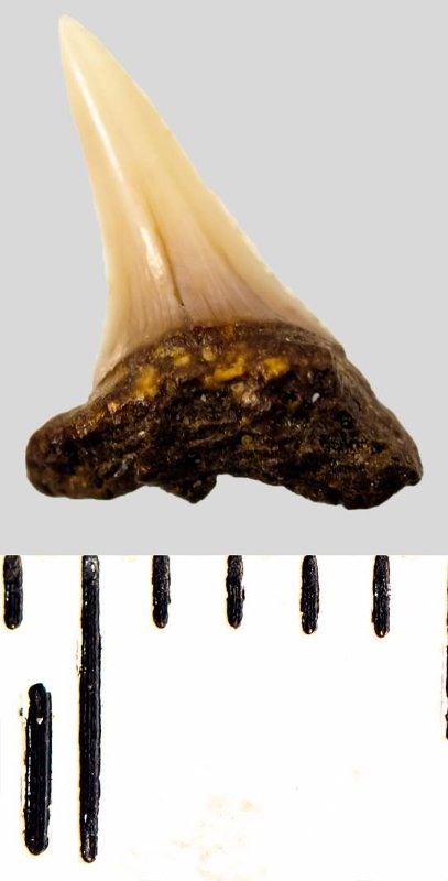 Зуб. Акула. Eostriatolamia subulata (Agassiz, 1843). Классификация: Хордовые Chordata, Позвоночные Vertebrata, Хрящевые рыбы Chondrichthyes, Пластиножаберные Elasmobranchii, Акулы Selachii, Ламнообразные Lamniformes, Песчаные акулы Odontaspididae