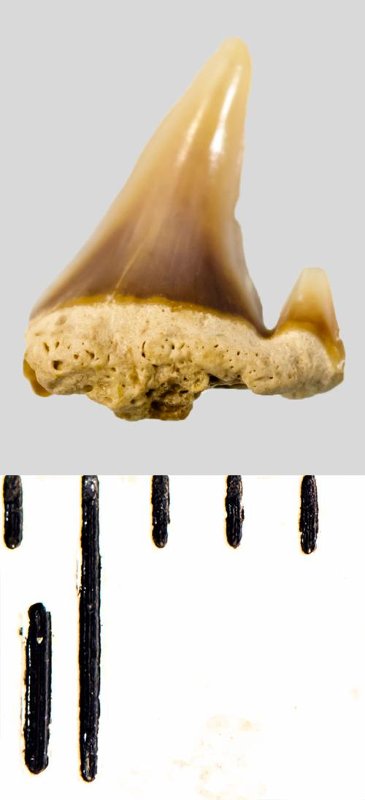 Зуб. Акула. Eostriatolamia subulata (Agassiz, 1843). Классификация: Хордовые Chordata, Позвоночные Vertebrata, Хрящевые рыбы Chondrichthyes, Пластиножаберные Elasmobranchii, Акулы Selachii, Ламнообразные Lamniformes, Песчаные акулы Odontaspididae