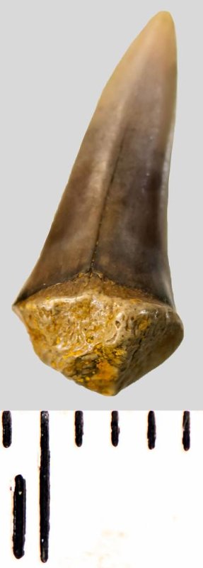Зуб. Акула. Eostriatolamia subulata (Agassiz, 1843). Классификация: Хордовые Chordata, Позвоночные Vertebrata, Хрящевые рыбы Chondrichthyes, Пластиножаберные Elasmobranchii, Акулы Selachii, Ламнообразные Lamniformes, Песчаные акулы Odontaspididae