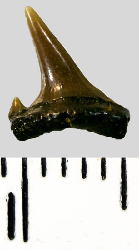 Зуб. Акула. Scapanorhynchus sp. Классификация: Хордовые Chordata, Позвоночные Vertebrata, Хрящевые рыбы Chondrichthyes, Пластиножаберные Elasmobranchii, Акулы Selachii, Ламнообразные Lamniformes