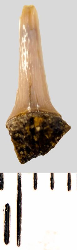 Зуб. Акула. Eostriatolamia subulata (Agassiz, 1843). Классификация: Хордовые Chordata, Позвоночные Vertebrata, Хрящевые рыбы Chondrichthyes, Пластиножаберные Elasmobranchii, Акулы Selachii, Ламнообразные Lamniformes, Песчаные акулы Odontaspididae