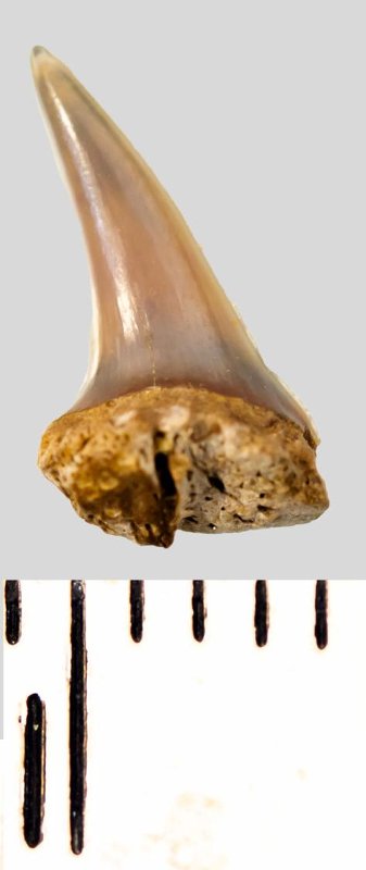 Зуб. Акула. Eostriatolamia subulata (Agassiz, 1843). Классификация: Хордовые Chordata, Позвоночные Vertebrata, Хрящевые рыбы Chondrichthyes, Пластиножаберные Elasmobranchii, Акулы Selachii, Ламнообразные Lamniformes, Песчаные акулы Odontaspididae