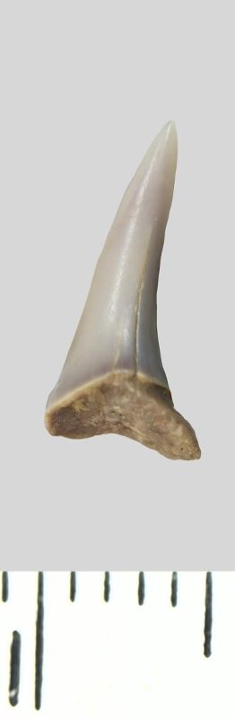 Зуб (фрагмент). Акула. Odontaspis venusta (Leriche, 1929). Классификация: Хордовые Chordata, Позвоночные Vertebrata, Хрящевые рыбы Chondrichthyes, Пластиножаберные Elasmobranchii