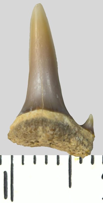 Зуб. Акула. Odontaspis venusta (Leriche, 1929). Классификация: Хордовые Chordata, Позвоночные Vertebrata, Хрящевые рыбы Chondrichthyes, Пластиножаберные Elasmobranchii