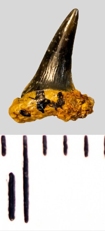 Зуб. Акула. Scapanorhynchus sp. Классификация: Хордовые Chordata, Позвоночные Vertebrata, Хрящевые рыбы Chondrichthyes, Пластиножаберные Elasmobranchii, Акулы Selachii, Ламнообразные Lamniformes