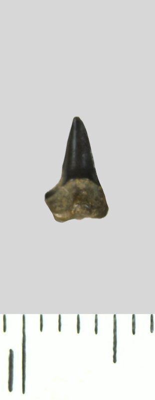 Зуб (фрагмент). Акула. Squatina sp. Классификация: Хордовые Chordata, Позвоночные Vertebrata, Хрящевые рыбы Chondrichthyes, Пластиножаберные Elasmobranchii