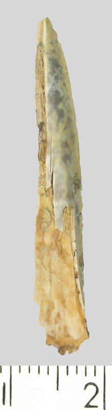 Зуб (фрагмент). Акула. Scapanorhynchus gigas Woodward, 1889. Классификация: Хордовые Chordata, Позвоночные Vertebrata, Хрящевые рыбы Chondrichthyes, Пластиножаберные Elasmobranchii