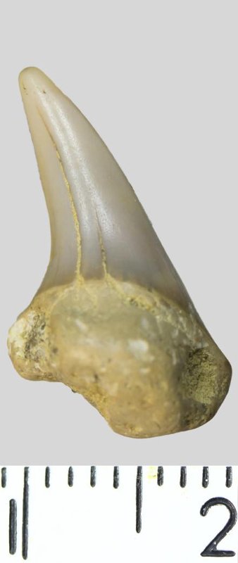 Зуб (фрагмент). Акула. Cretoxyrhina sp. Классификация: Хордовые Chordata, Позвоночные Vertebrata, Хрящевые рыбы Chondrichthyes, Пластиножаберные Elasmobranchii