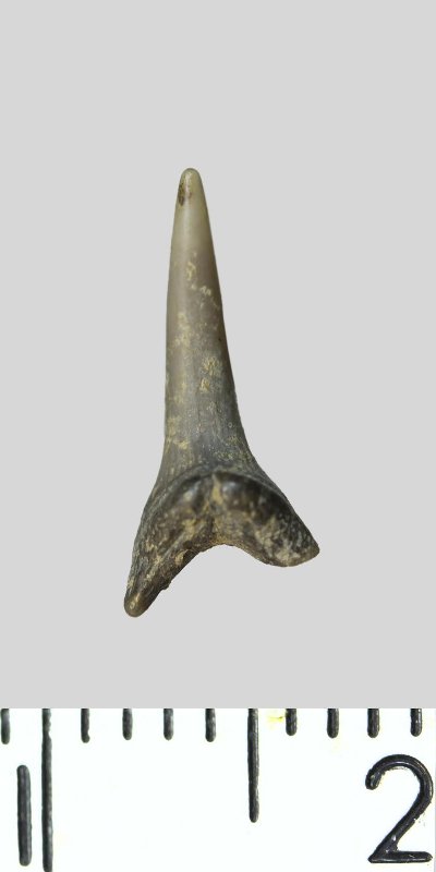 Зуб. Акула. Scapanorhynchus raphiodon (Agassiz, 1843). Классификация: Хордовые Chordata, Позвоночные Vertebrata, Хрящевые рыбы Chondrichthyes, Пластиножаберные Elasmobranchii