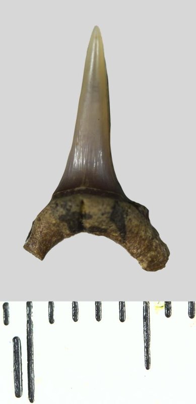Зуб. Акула. Eostriatolamia sp. Классификация: Хордовые Chordata, Позвоночные Vertebrata, Хрящевые рыбы Chondrichthyes, Пластиножаберные Elasmobranchii