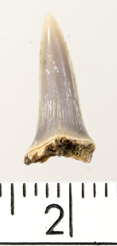 Зуб (фрагмент). Акула. Hypotodus sp. Классификация: Хордовые Chordata, Позвоночные Vertebrata, Хрящевые рыбы Chondrichthyes, Пластиножаберные Elasmobranchii