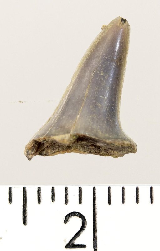 Зуб (фрагмент). Акула. Hypotodus sp. Классификация: Хордовые Chordata, Позвоночные Vertebrata, Хрящевые рыбы Chondrichthyes, Пластиножаберные Elasmobranchii
