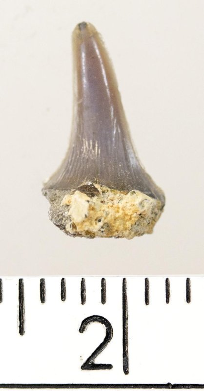 Зуб (фрагмент). Акула. Hypotodus sp. Классификация: Хордовые Chordata, Позвоночные Vertebrata, Хрящевые рыбы Chondrichthyes, Пластиножаберные Elasmobranchii