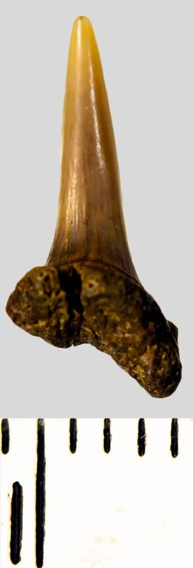 Зуб. Акула. Eostriatolamia subulata (Agassiz, 1843). Классификация: Хордовые Chordata, Позвоночные Vertebrata, Хрящевые рыбы Chondrichthyes, Пластиножаберные Elasmobranchii, Акулы Selachii, Ламнообразные Lamniformes, Песчаные акулы Odontaspididae