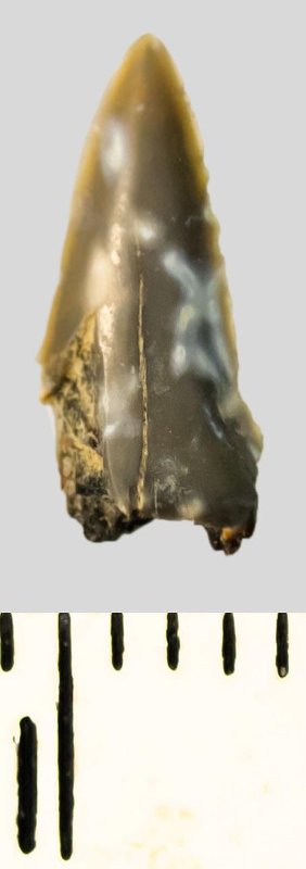 Зуб (фрагмент). Акула. Lamniformes gen. et sp. indet. Классификация: Хордовые Chordata, Позвоночные Vertebrata, Хрящевые рыбы Chondrichthyes, Пластиножаберные Elasmobranchii