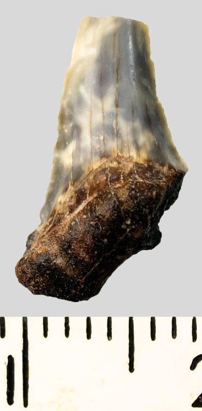 Зуб. Акула. Lamiostoma vincenti (Winkler, 1876). Классификация: Хордовые Chordata, Позвоночные Vertebrata, Хрящевые рыбы Chondrichthyes, Пластиножаберные Elasmobranchii