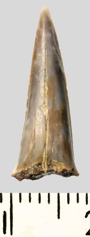 Зуб (фрагмент). Акула. Hypotodus sp. Классификация: Хордовые Chordata, Позвоночные Vertebrata, Хрящевые рыбы Chondrichthyes, Пластиножаберные Elasmobranchii
