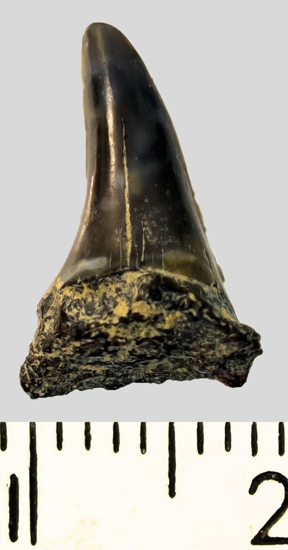 Зуб (фрагмент). Акула. Hypotodus sp. Классификация: Хордовые Chordata, Позвоночные Vertebrata, Хрящевые рыбы Chondrichthyes, Пластиножаберные Elasmobranchii