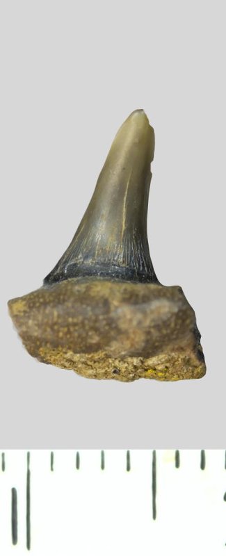 Зуб (фрагмент). Акула. Paraorthacodus sp. Классификация: Хордовые Chordata, Позвоночные Vertebrata, Хрящевые рыбы Chondrichthyes, Пластиножаберные Elasmobranchii