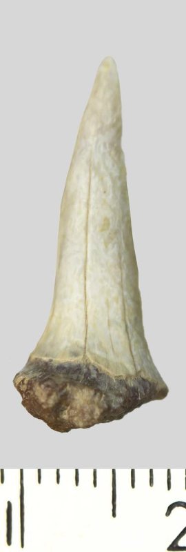 Зуб (фрагмент). Акула. Hispidaspis sp. Классификация: Хордовые Chordata, Позвоночные Vertebrata, Хрящевые рыбы Chondrichthyes, Пластиножаберные Elasmobranchii