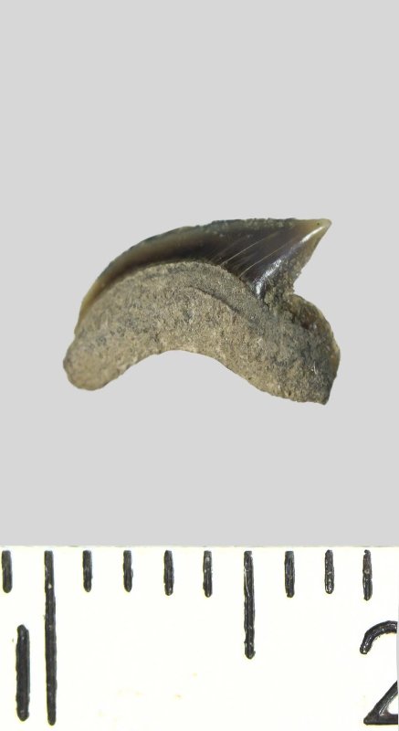 Зуб. Акула. Palaeoanacorax sp. Классификация: Хордовые Chordata, Позвоночные Vertebrata, Хрящевые рыбы Chondrichthyes, Пластиножаберные Elasmobranchii