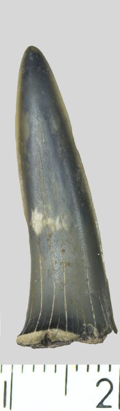 Зуб (фрагмент). Акула. Scapanorhynchus gigas Woodward, 1889. Классификация: Хордовые Chordata, Позвоночные Vertebrata, Хрящевые рыбы Chondrichthyes, Пластиножаберные Elasmobranchii