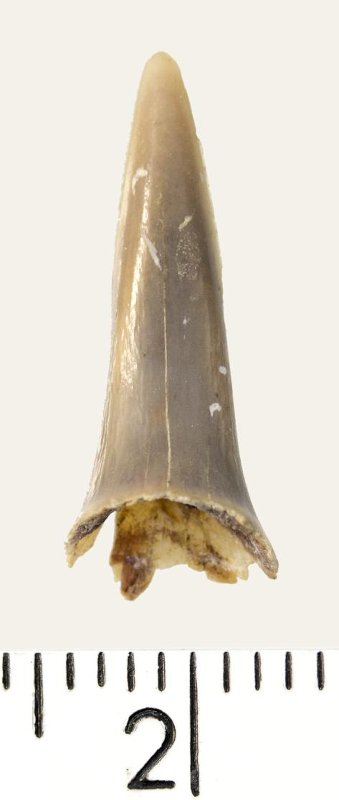 Зуб (фрагмент). Акула. Jaekelotodus sp. Классификация: Хордовые Chordata, Позвоночные Vertebrata, Хрящевые рыбы Chondrichthyes, Пластиножаберные Elasmobranchii