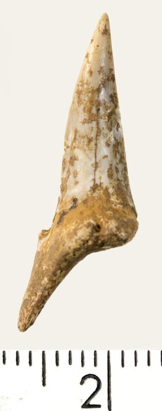 Зуб. Акула. Jaekelotodus sp. Классификация: Хордовые Chordata, Позвоночные Vertebrata, Хрящевые рыбы Chondrichthyes, Пластиножаберные Elasmobranchii