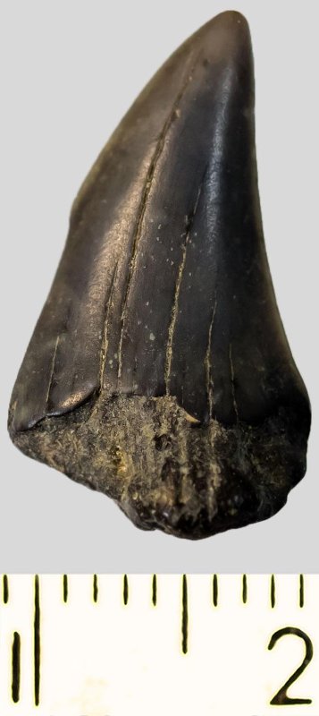 Зуб (фрагмент). Акула. Otodus subserratus (Agassiz, 1843). Классификация: Хордовые Chordata, Позвоночные Vertebrata, Хрящевые рыбы Chondrichthyes, Пластиножаберные Elasmobranchii