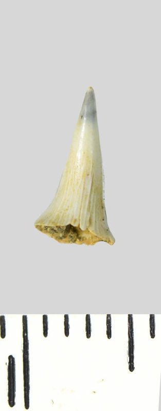 Зуб (фрагмент). Акула. Scapanorhynchus sp. Классификация: Хордовые Chordata, Позвоночные Vertebrata, Хрящевые рыбы Chondrichthyes, Пластиножаберные Elasmobranchii
