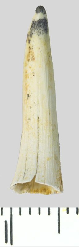 Зуб (фрагмент). Акула. Scapanorhynchus sp. Классификация: Хордовые Chordata, Позвоночные Vertebrata, Хрящевые рыбы Chondrichthyes, Пластиножаберные Elasmobranchii
