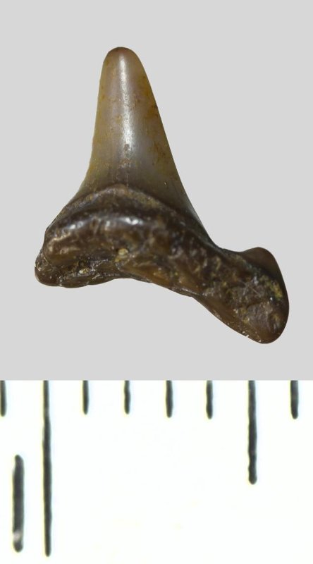 Зуб. Акула. Eostriatolamia subulata (Agassiz, 1843). Классификация: Хордовые Chordata, Позвоночные Vertebrata, Хрящевые рыбы Chondrichthyes, Пластиножаберные Elasmobranchii