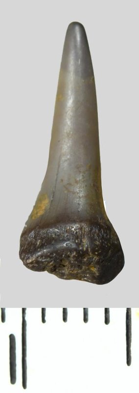 Зуб (фрагмент). Акула. Eostriatolamia venusta Leriche, 1906. Классификация: Хордовые Chordata, Позвоночные Vertebrata, Хрящевые рыбы Chondrichthyes, Пластиножаберные Elasmobranchii