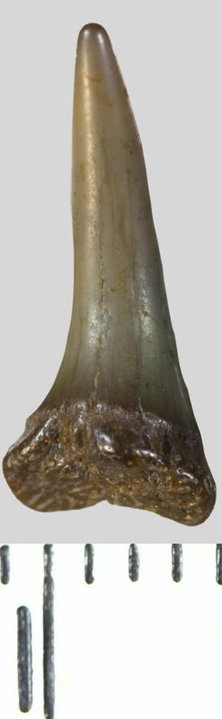 Зуб. Акула. Eostriatolamia venusta Leriche, 1906. Классификация: Хордовые Chordata, Позвоночные Vertebrata, Хрящевые рыбы Chondrichthyes, Пластиножаберные Elasmobranchii