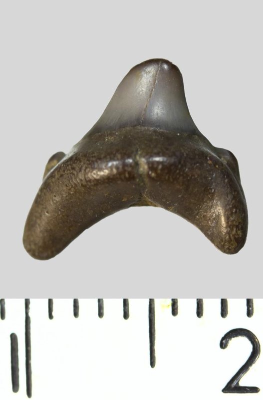 Зуб. Акула. Eostriatolamia venusta Leriche, 1906. Классификация: Хордовые Chordata, Позвоночные Vertebrata, Хрящевые рыбы Chondrichthyes, Пластиножаберные Elasmobranchii
